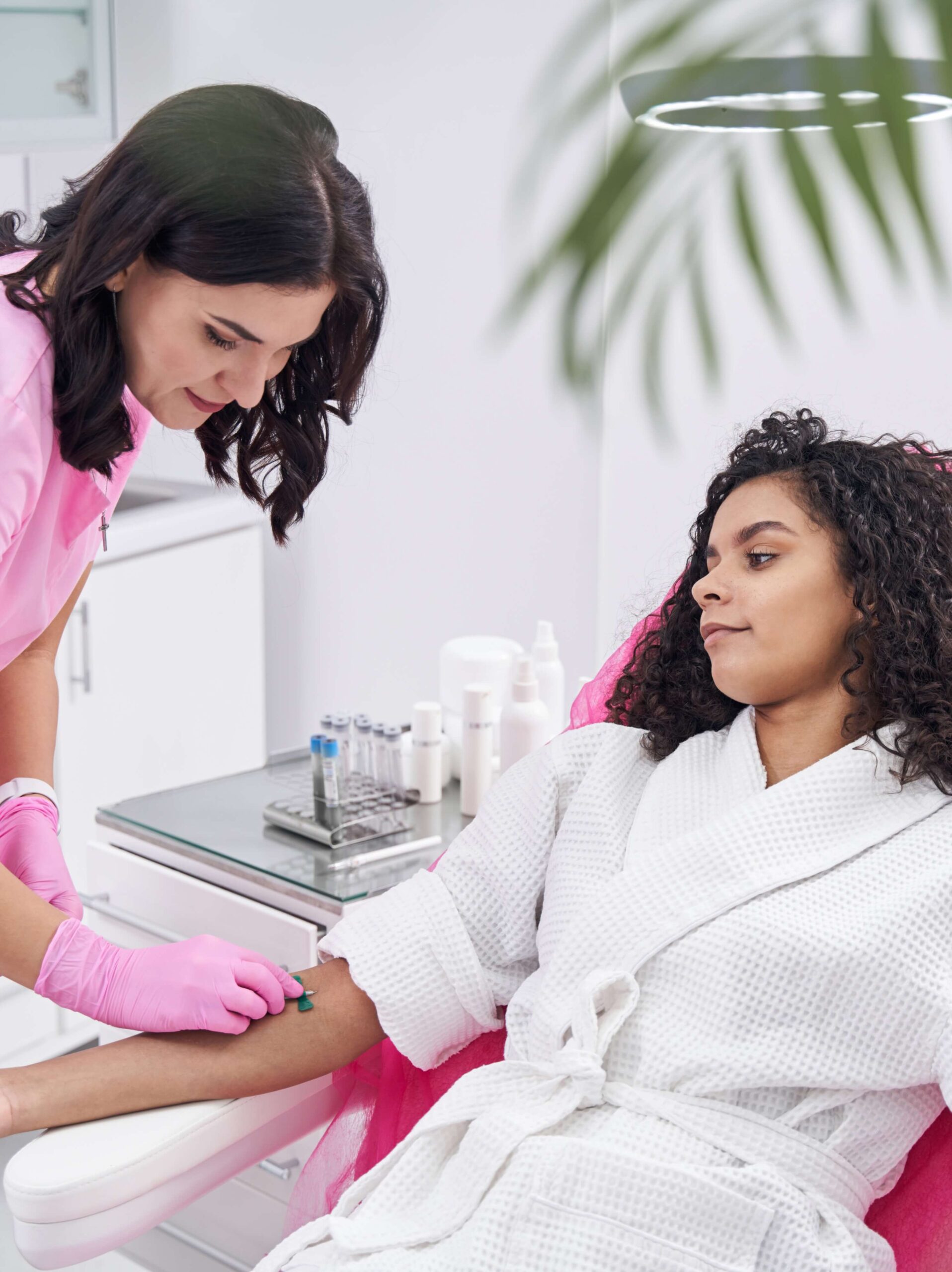 Contamos con dos salones lujosos con sillones de cuero, estaciones de carga y almohadillas térmicas opcionales. Disfruta de música relajante, snacks, bebidas y meditaciones personalizadas para una experiencia completa. Nuestras enfermeras expertas garantizan un tratamiento suave y reconfortante.